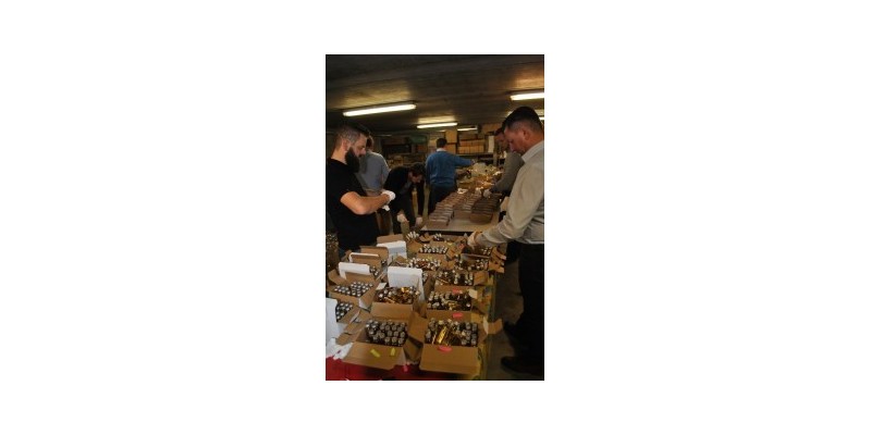 Verleden vrijdag kwam de club samen in ons “warehouse” om een eerste deel van de eindejaars doosjes af te vullen. Er werd een lopende band klaargezet in het warehouse, om alle stadia van het afvulproces te vergemakkelijken: